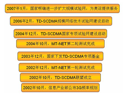 2006年,在信产部组织下在保定、青岛、厦门、北京、上海进行了3阶段的小规模试验网技术验证;